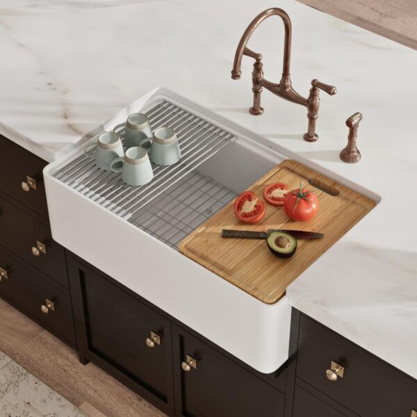 Finish & Style | Choose to match kitchen design and faucet. | Brushed steel, matte black, white fireclay, or metallic finishes. |