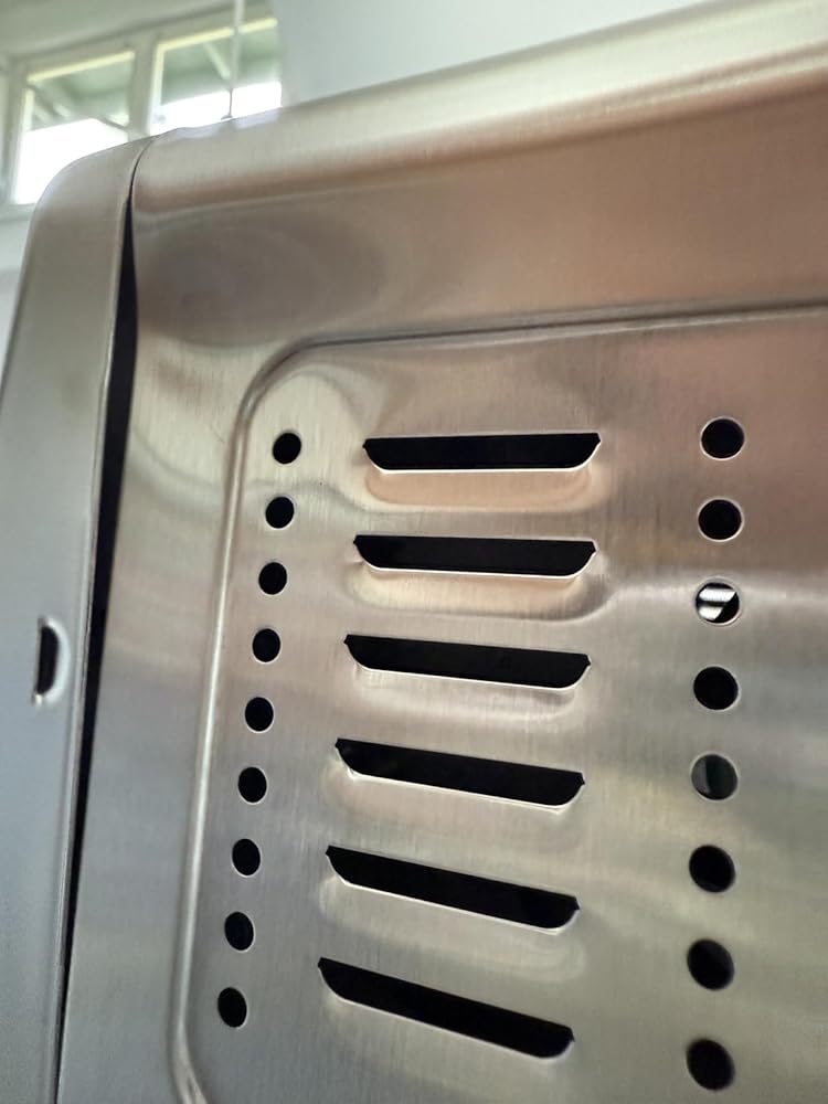 Okay, I’ve shopped and shopped for an all-purpose, counter-top appliance that would get me all I wanted. This fab little beauty is helping me enjoy cooking again. I live in 500 sq. ft. home, no stove, no oven. It’s been 10 years with 2 induction burners, a toaster oven, bbq grill. It’s been okay. I bought a tiny air fryer I never use, and put up with rain and bugs to bbq. I take out and put away my induction burners. Cooking is pretty boring until now.I’m having so much fun trying recipes that I could never attempt. Bread, grilling steaks (perfect), pizza that is round and crispy, not dried out. The convection oven is simply amazing, cutting time by 1/3 and moist banana bread is delicious. It’s super easy to use and so many functions, I can’t wait to try all of them. I made certain the rotisserie operated but haven’t tried it yet. The outside is barely warm to the touch in every setting I’ve tried. The only reason I gave it 4 stars was it arrived with a small dent that hasn’t made any difference in its operation. I live in Hawaii and getting this has changed my cooking. I hope it’s durable as I use it for every meal in some capacity. And I love the perfectly fitted, easily cleaned, versatile cooling surfaces that came with it. I’ve used it 50 times and it’s still spotless because it’s so easy to keep clean.