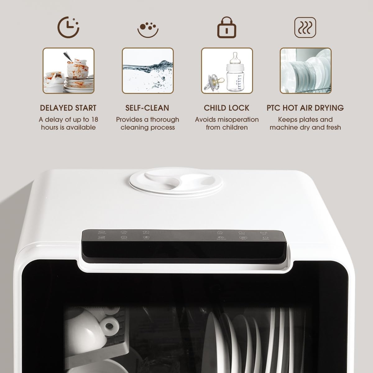 - SELF-CLEAN & CHILD LOCK FUNCTION: The HAVA Mini Dishwasher features a Self-Clean program for thorough cleaning from the inside out, ensuring consistent washing performance. It also includes a child lock function to prevent misoperation.