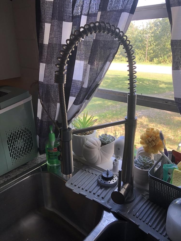 Ok this washes wonderfully but I can’t fit my big skillet in there. My small one yes. I wash my plates and silverware and glasses then my pans but still have to wash my big skillet because anyway you try it won’t fit. It won’t hook up to my faucet but that’s ok I pour the water in at the top and turn it on. It’s tall and won’t fit on my countertop so I drain it in a small bucket because it holds very little water. And I empty it out after each use. I rent a small house or I would make this fit under my cabinets but it’s ok it’s a small hassle but my dishes are clean and sterile. If you have the counter space and the right faucet it’s well worth it.it holds three of this pitcher included of water that you pour in the top reservoir pictured. As you can see the small skillet fits but no way the bigger one will.