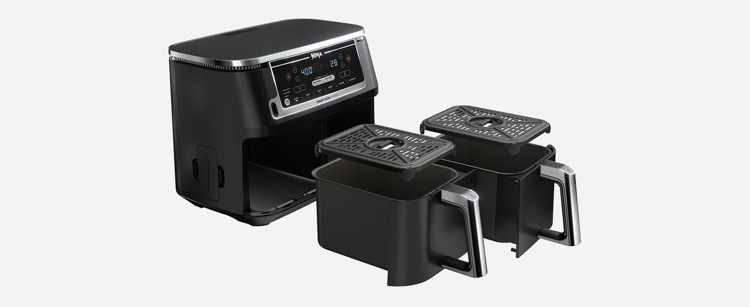 Included Components | (2) 5 Quart Baskets, (2) Nonstick Crisper Plates, 15-Recipe Guide, Dual Zone Air Fryer, Foodi Smart Thermometer |