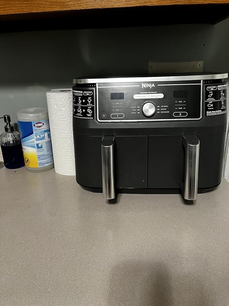 I can’t tell you how much I love this Ninja 10QT 6 in 1 air fryer! I originally purchased the Gourmia Toaster Oven Air Fryer Combo but I had to send that baby back due oil leaking onto my counter. I then decided to go with this Ninja and I am in love! It is so easy to use and so very easy to clean. It’s big and I love that I can cook 2 different types of food at once. The Smart feature is easy to use. Food taste is wonderful! I have made wings, chicken patties, fries and chicken thighs so far and it cooks everything to perfection! There’s no smoke and no intense heat coming out of the fryer when cooking. When I cooked the wings and the thighs, the oil just dripped on the parchment paper and I just scooped it up and dumped in the garbage – very easy and no mess. -