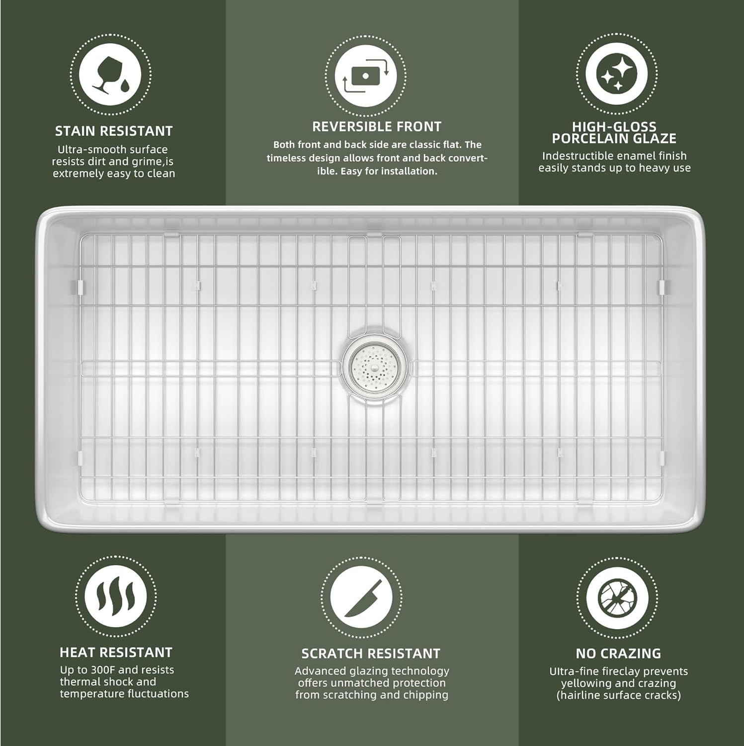 UPGRADED Superior Drainage System White Farmhouse Sink